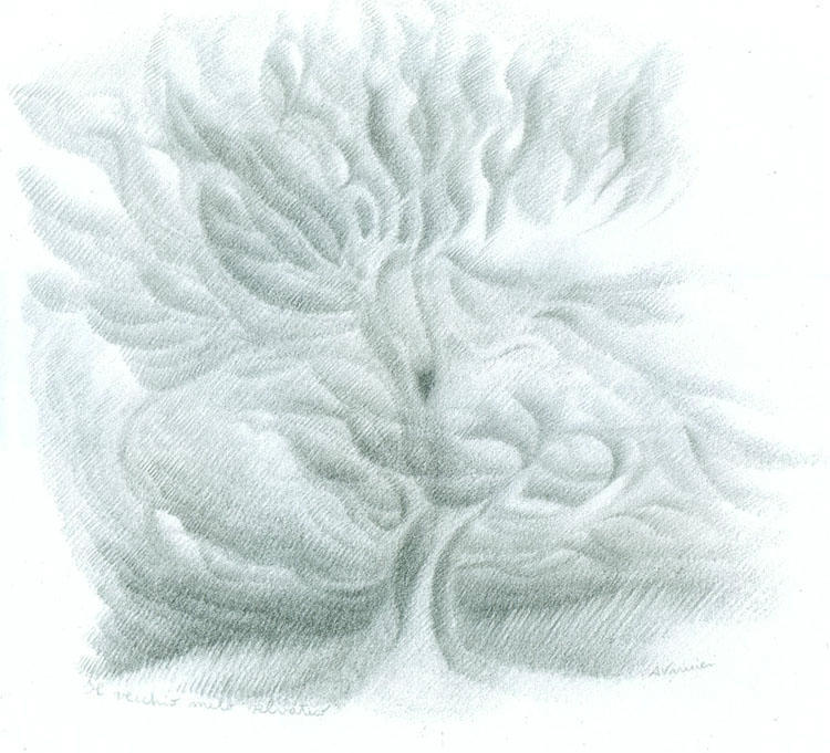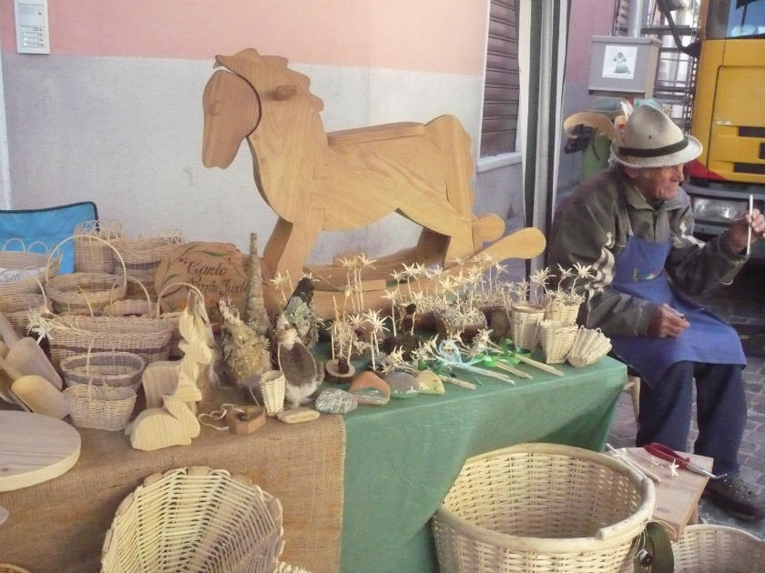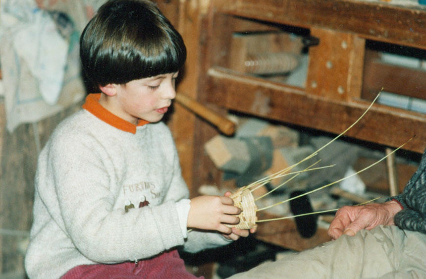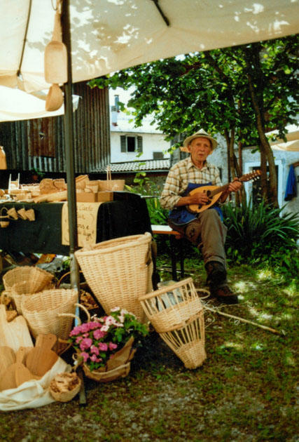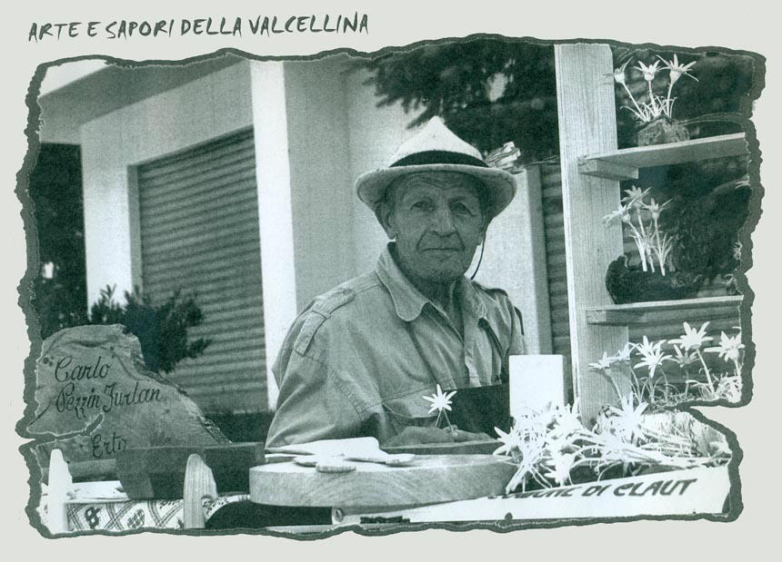Cammino per i sentieri sulla collina di San Martino, m'inoltro nel bosco e mi par sempre che Carlo cammini avanti a me col suo passo leggero e la "manèra" fissata alla cintura.Sotto il sentiero, appresso al ginepro, c'è un arbusto di Sanguinello: uno dei rami flessuosi è intrecciato su sè stesso e cresce così.E' una delle tracce lasciate da Carlo nel suo cammino, certamente ne avrebbe ricavato il manico per un cestino quando si fosse fissata la forma curva.Talvolta nel bosco andava a suonare col sassofono una canzone. Egli esprimeva anche così la fedeltà alla sua terra e il suo amore per la natura.Anche nella sua vecchia casa di pietra, la Sciasa de Carle Furlan, posso percepire ancora la sua presenza.