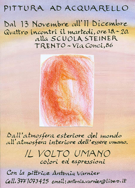 Percorsi tra i colori, per sperimentarne l'essenza. Studi dei regni minerale, vegetale e animale.Ogni corso può essere da quattro a dieci incontri della durata di due ore, o tre a seconda degli accordi. In ogni incontro è previsto uno studio, una o più esercitazioni pittoriche e un momento di confronto finale.I materiali sono forniti dalla conduttrice: colori minerali, carta, pennelli.Ogni corso può concentrarsi su uno dei temi disponibili: